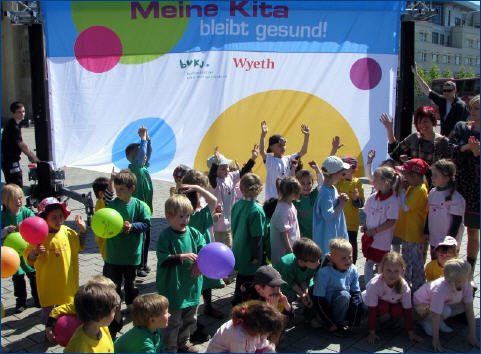 Gesundheit stand im Mittelpunkt: Was machen Kitas, um gesund zu bleiben? Die Aktion informierte Erzieherinnen und Erzieher, Eltern, aber vor allem eben auch Kinder über den Schutz vor Krankheiten. Viele Kitas achten bereits auf Bewegung und gesunde Ernährung, doch auch Impfen ist für die Prävention von Krankheiten sehr wichtig - daher der Slogan der Aktion: "Impfschutz ist so wichtig für die Gesundheit wie Bewegung und gesunde Ernährung".