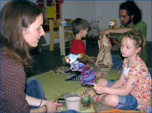 Loki Leopold und Frédéric Fernandes, Studenten der Alice Salomon Hochschule, verbrachten ihr 1. praktisches Studiensemester bei Casa Azul. Im Rahmen des Seminars „Ästhetische Bildung und Partizipation“ entwickelten sie die Idee eines Puppentheaterprojekts mit Kindern. Diese Idee setzen sie in ihrem Praxissemester bei uns vom 30.03. bis 19.06.2009 um. Mit der Idee verfolgten beide das Ziel, dass Kinder künstlerisch aktiv werden sollen und lernen, sich kreativ auszudrücken. In den Vordergrund der Arbeit stellten sie den Prozess des Projekts und den Ideenreichtum der Kinder und nicht die Entstehung eines „fertigen“ Theaterstücks. Sie verstanden sich als Moderator, weniger als Macher und regten die Kinder an, mit den verfügbaren Materialien eigenständig ihre jeweils individuelle Puppe anzufertigen. Mit den fertigen Puppen traten die Kinder in einen kommunikativen Austausch mit den anderen Puppen und entwickelten so eine mehr oder weniger komplexe, häufig eigenständig improvisierte Geschichte, die sie den anderen Kindern am Ende des Projekts in einem gruppenübergreifenden Morgenkreises vorführten. An dem Projekt wirkten mit: Anna-Lena, Carl, Damian, Elias, Lena, Loéh, Noah und Samuel.