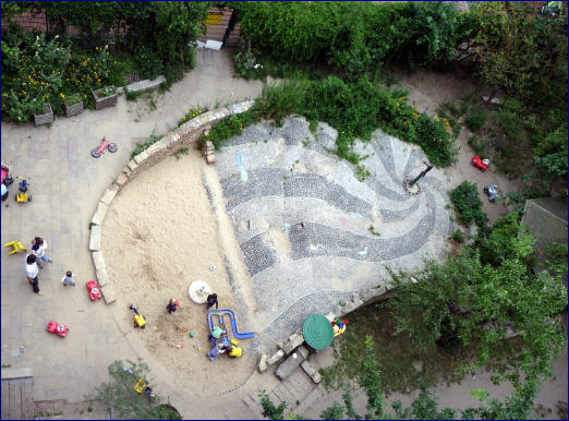 Bzgl. der Gestaltung des Gartens haben die Kinder, Erzieher und Eltern noch einiges vor. Doch bereits zum jetzigen Zeitpunkt lässt sich einiges anstellen - Burgen bauen, Wasser pumpen, Rennen und Toben, Zelten, Gärten anlegen ... oder einfach Pause machen.
